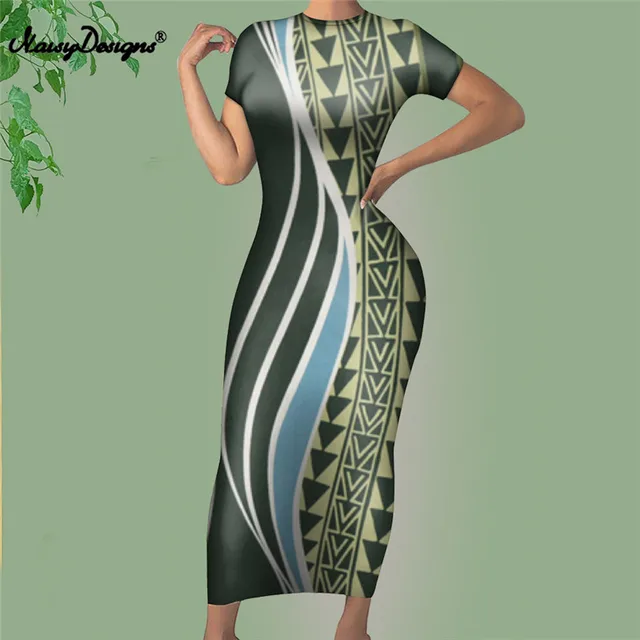 Noisydesigns Women Long Dresses Elastic Short Sleeve Sexy Lady Bodycon Robe Dresses Samoan Polynesian Tribal Pattern Woman Dress Dresses Aliexpress